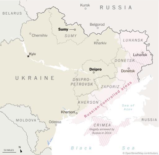 Бои продолжаются вдоль 620-мильной (992 км) линии фронта, включая восточную часть Донецкой области, которая, по словам украинских чиновников и аналитиков, является основным направлением усилий Москвы. Российские официальные лица также заявляют, что их войска вошли в Днепропетровскую область, но власти в Киеве это отрицают.
