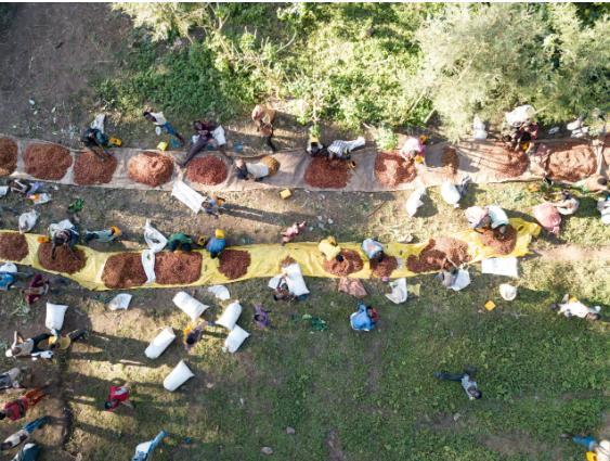 Сортировка свежесобранных кофейных зерен в Эфиопии. Председатель Lavazza, одного из крупнейших в мире производителей кофе, призывает к дальнейшему отсрочке введения знакового регламента Европейского союза по борьбе с обезлесением из-за опасений по поводу готовности цепочки поставок и требований по соблюдению. (Фото: Giuseppe Cipriani / Alamy Stock Photo)