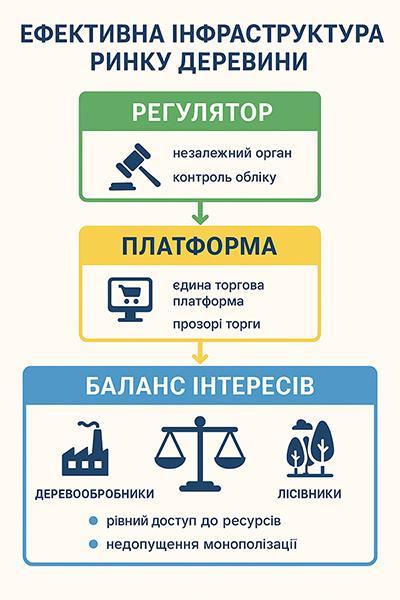 Для нормалізації ринку деревини доцільно не лише замінити регулятор лісового ринку, а й створити абсолютно нову інфраструктуру ринку деревини.