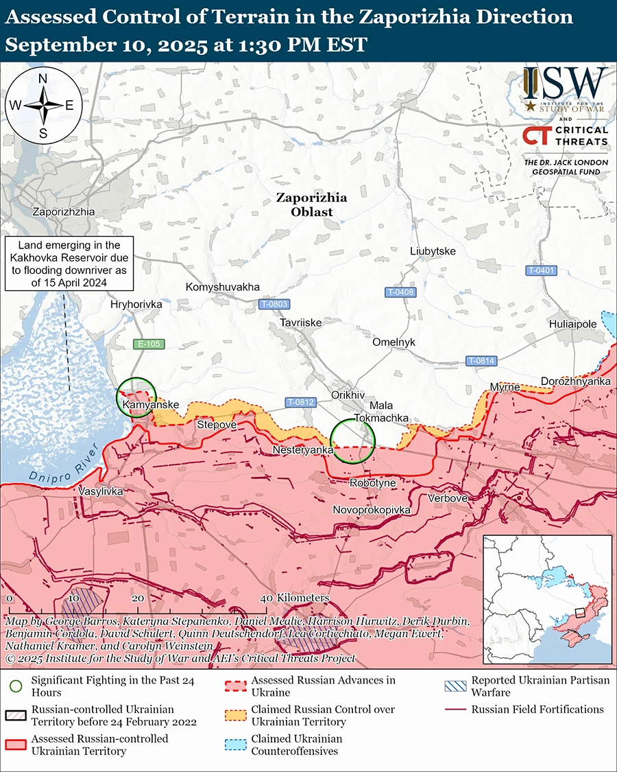 Оценка продвижения российских войск: геолоцированные кадры, опубликованные 10 сентября, указывают на то, что российские войска недавно продвинулись в восточной части Нового Шахово (к востоку от Доброполья). [77]
