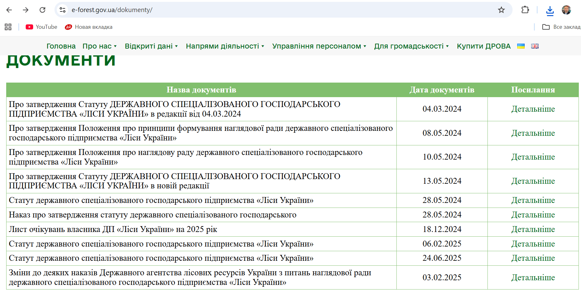 Нам відомо, що розпорядженням КМУ від 21.01.2025 № 49-р було погоджено кандидатури переможців відбору на посади членів наглядової ради державного спеціалізованого господарського підприємства “Ліси України” (далі по тексту ДП «Ліси України»), а фінальне призначення членів ради та її створення здійснюється Наказом Державного агентства лісових ресурсів України.