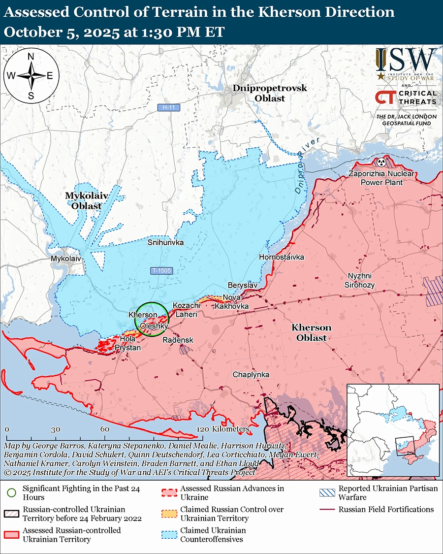 5 октября враг продолжил ограниченные наземные атаки на Херсонском направлении, но не продвинулся вперед.
