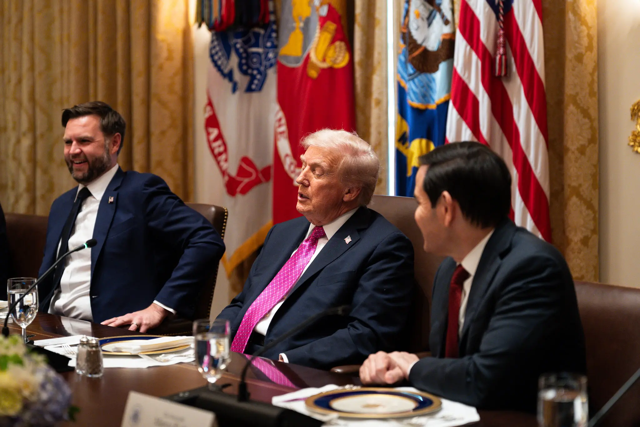 Вице-президент Джей Ди Вэнс, Трамп и госсекретарь Марко Рубио во время обеда в Белом доме. Фото…Тирни Л. Кросс / Нью-Йорк Таймс