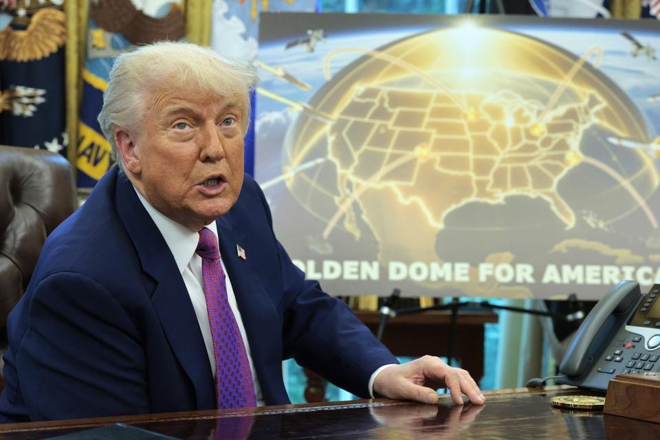 Вашингтон, 20 мая: Президент США Дональд Трамп выступает в Овальном кабинете Белого дома 20 мая 2025 года в Вашингтоне, округ Колумбия. Президент Трамп объявил о своих планах по созданию «Золотого купола», национальной системы противоракетной обороны и противоракетного вооружения. (Фото Чипа Сомодевиллы/Getty Images)