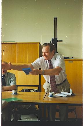 Справа Николай Васильевич Колесниченко благодарит за встречу профессора Макса Кротта ( слева на переднем плане. На втором плане если я не ошибаюсь профессор Дялтувас), крупнейшего специалиста по лесным проблемам стран с переходной экономикой. Абсолютно уверен, что его базовых работ, – Анализ лесной политики и Стратегии государственного управления лесами европейских стран (цитирую по памяти), никто из нынешних реформаторов не читал, а возможно и вообще о них не слышал.