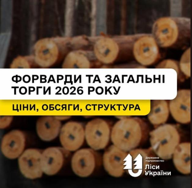 Загальні аукціони з продажу необробленої деревини ресурс заготівлі І квартал 2026 року проводитимуться з 21 листопада 2025 року по 24 грудня 2025 року, графік проведення аукціонів можна переглянути за посиланням https://www.ukrforest.com/auction_next.grafik.
