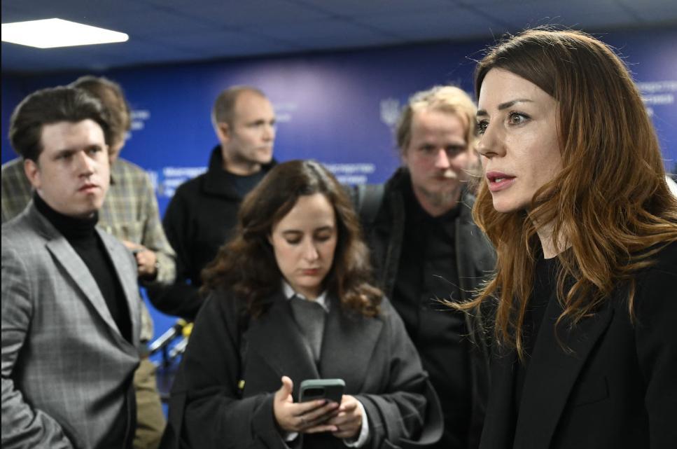 Министр энергетики Украины Светлана Гринчук беседует с журналистами во время пресс-конференции в министерстве в Киеве в понедельник. (Женя Савилов/AFP/Getty Images)