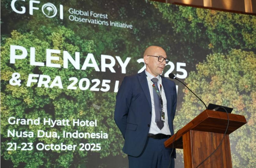 Ансси Пеккаринен представляет результаты последней Глобальной оценки лесных ресурсов в Индонезии. Фото: ФАО (офис GFOI)