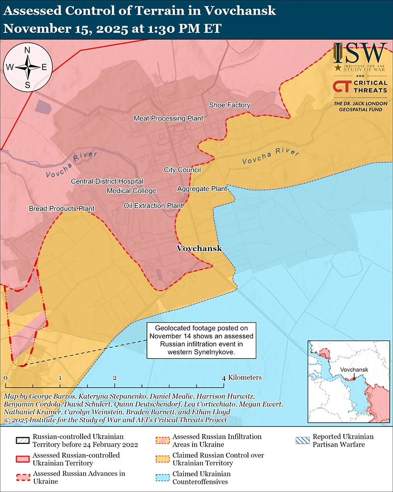 14 и 15 ноября российские войска атаковали к северо-востоку от Харькова в районе Синельниково и Волчанска. [45]