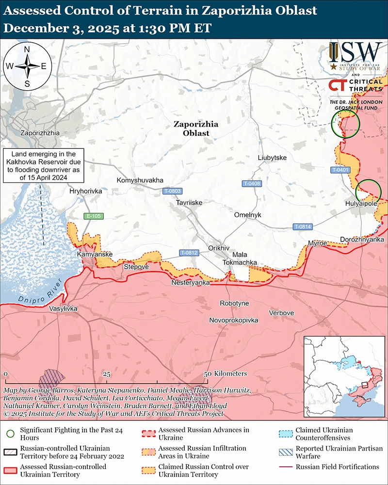 3 декабря российские войска продолжили наступательные операции на западе Запорожской области, но не достигли подтверждённого прогресса.