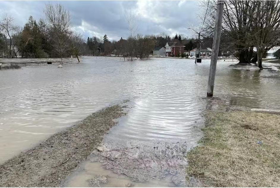 Наводнение в Гранд-Вэлли, Онтарио, вдоль реки Гранд, в марте 2025 года. THE CANADIAN PRESS/Rob Skeoch