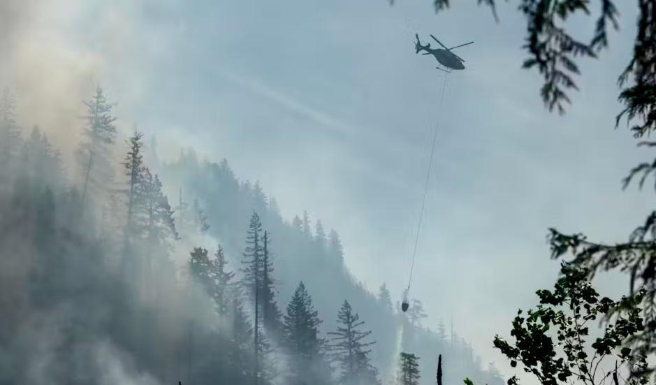 Вертолет сбрасывает воду на лесной пожар в Драйден-Крик, к северу от Сквамиша, Британская Колумбия, в июне 2025 года. THE CANADIAN PRESS/ Тияна Мартин