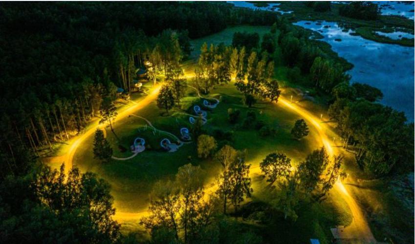 В глэмпинг-парке «Тервете» Латвийского государственного лесного природного парка вы можете насладиться как романтическим отдыхом в тишине природы, так и активным отдыхом с семьей и друзьями, а любители рыбалки оценят возможность поймать свой самый крупный улов. Дома – как на деревьях, так и под землей – оборудованы всеми удобствами в любое время года. Глэмпинг-парк расположен у водохранилища Тервете, что дает любителям активного отдыха возможность совершить прогулку на лодке, SUP-борде или водном велосипеде, а также прогуляться пешком или покататься на велосипеде. На благоустроенной территории также есть палатки и ухоженные зоны для пикника.