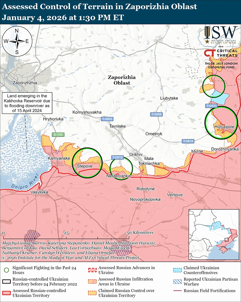 4 января российские войска продолжили наступательные операции на западе Запорожской области, но не добились подтвержденных успехов.