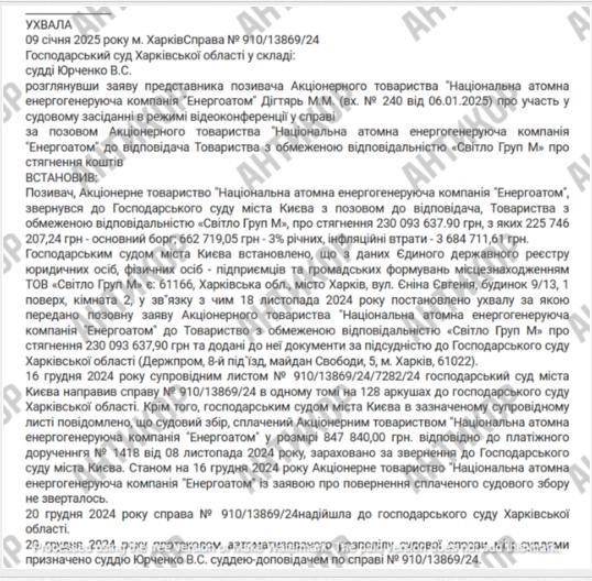 Згодом, після розголосу, «Енергоатом» таки почав судитися зі «Світло Груп М» щодо стягнення заборгованості на сотні мільйонів.