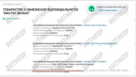 За даними реєстрів, Олег Шурма має кіпрську реєстрацію. Він є одним з кінцевих бенефіціарних власників ТОВ «Мастер фінанс», де і підсвітили його реєстрацію в районі з красивою назвою Пафос.