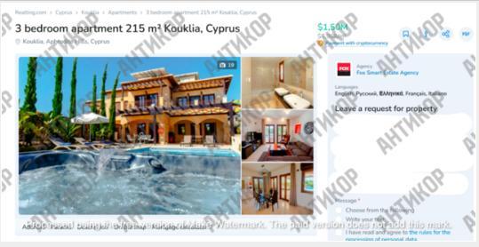 Будинок на три кімнати з трьома санвузлами, садом та неперевершеним видом на цій же вулиці на кіпрських сайтах нерухомості продають за 1,5 мільйона доларів.