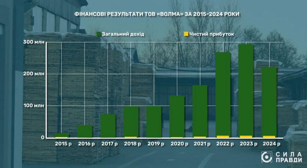 Щорічний оборот компанії останні п’ять років стабільно тримається в межах 150-300 мільйонів гривень на рік. Частина з них припадає на державні замовлення із лісозаготівлі. Щороку фірма генерує 5-10 мільйонів гривень чистого прибутку.