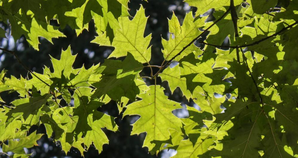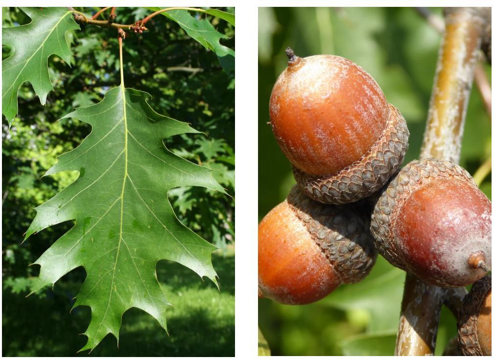 Рис. 1: Лист красного дуба (слева): В то время как лопасти листьев местных дубов округлые, у красного дуба они заостренные. Фото: Грегор Аас