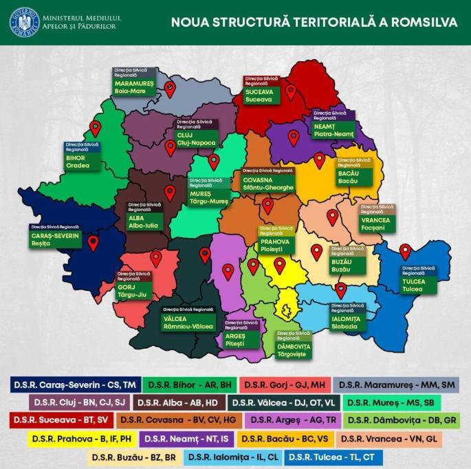 Таким образом, после реорганизации Национального лесного агентства в Ромсилве, Сибиуское региональное управление лесного хозяйства перейдет в подчинение Мурешскому региональному управлению лесного хозяйства.