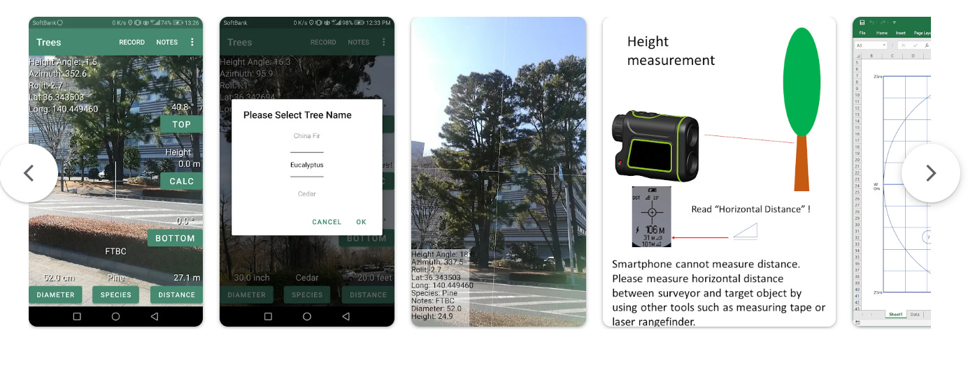 Громадянсько-наукова програма NASA / GLOBE. Через вбудований акселерометр смартфона вимірюється висота дерева; дані передаються до NASA і використовуються для валідації лазерного альтиметра ICESat-2. Застосовується у понад 100 країнах. Ідеальний для навчальних вимірювань у рамках занять.