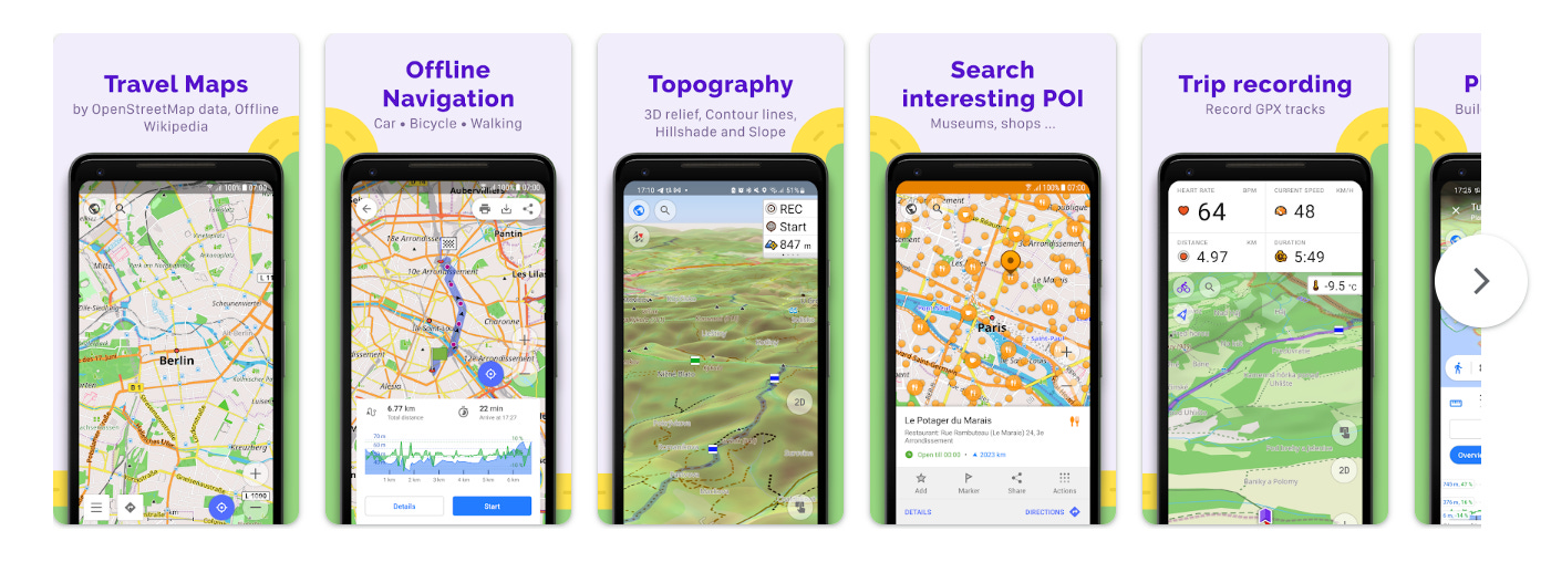 Відкритий код (Apache 2.0), розвивається спільнотою. Відсутня реклама, нульовий збір даних. Є активна україномовна спільнота, що підтримує цей застосунок. Понад 6 мільйонів завантажень. Покриває ліси, стежки, горизонталі; ідеальний як резервний офлайн-навігатор.