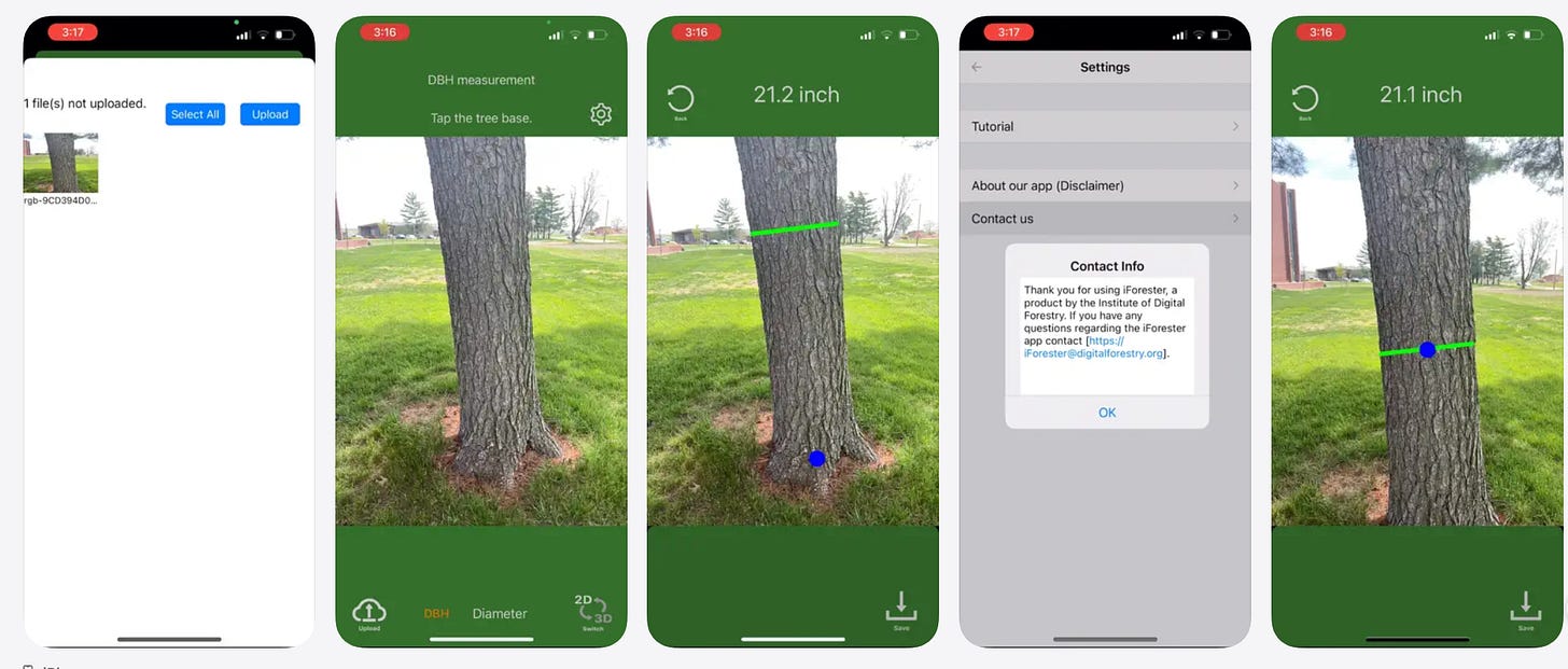 Розроблений командою Університету Пурдю (США) у рамках Hardwood Tree Improvement and Regeneration Center (HTIRC). Поєднує LiDAR і RGB-камеру для автоматизованого визначення діаметра на висоті грудей, висоти і розрахунку запасу біомаси. Науковий інструмент; завантаження через Apple App Store.