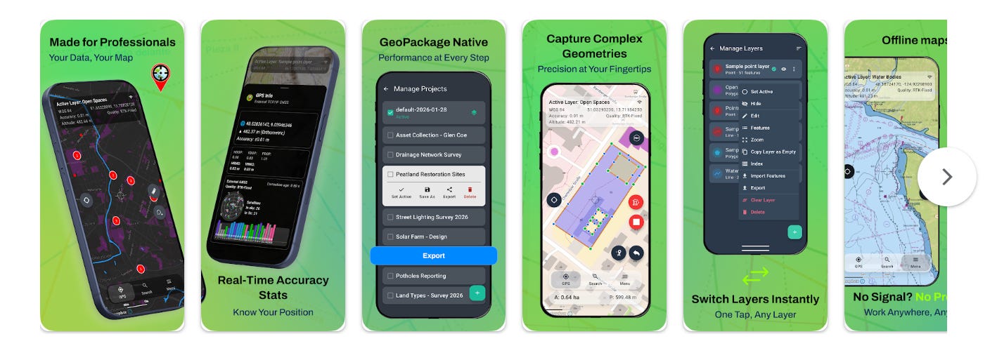 Розроблений непальською компанією Aviyaan Tech. Повністю безкоштовний, без реклами та обмежень. Підтримує зовнішні RTK-приймачі та NTRIP-клієнт для сантиметрової точності позиціонування. Імпорт/експорт у форматах KML, SHP, GeoJSON, MBTiles. Понад 500 000 завантажень. Дозволяє додавати поля атрибутів, фотографії, записувати треки. Один із найбільш функціональних повністю безкоштовних ГІС-клієнтів.