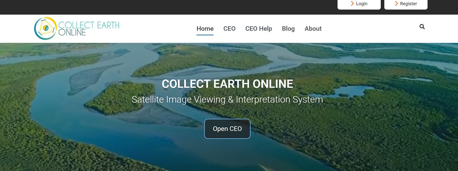 Уже згадувався раніше у цій публікації. Повний конвеєр від польових вимірювань до розрахунку вуглецевого запасу. Arena Mobile забезпечує стандартизований збір таксаційних даних; Collect Earth Online – супутникову верифікацію та масштабування на всю площу лісу. Через цю екосистему підготовлено 70% Довідкових рівнів REDD+ для РКЗК ООН. Практичний алгоритм: ДДВ і висота через Arena → алометричні рівняння (база GlobAllomeTree) → масштабування через Collect Earth Online.