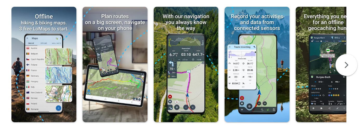 Також від Asamm Software (Чехія). Від Locus GIS відрізняється більшим акцентом на навігацію та рекреацію. Принципово важлива деталь для українських користувачів: включає карти Visicom України як вбудований картографічний шар. Підтримує WMS/WMTS. Понад 5 мільйонів завантажень; сильна база користувачів у Центральній та Східній Європі.