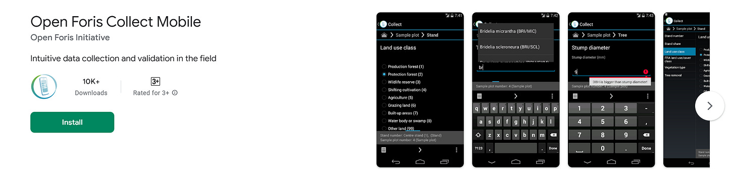 Розроблений Fairventures Worldwide (Німеччина). Вимірювання діаметра дерев через смартфон + вбудовані моделі росту і вуглецевих потоків для агролісових систем. Основна зона застосування – тропіки (Індонезія, Уганда), але алгоритм є універсальним.