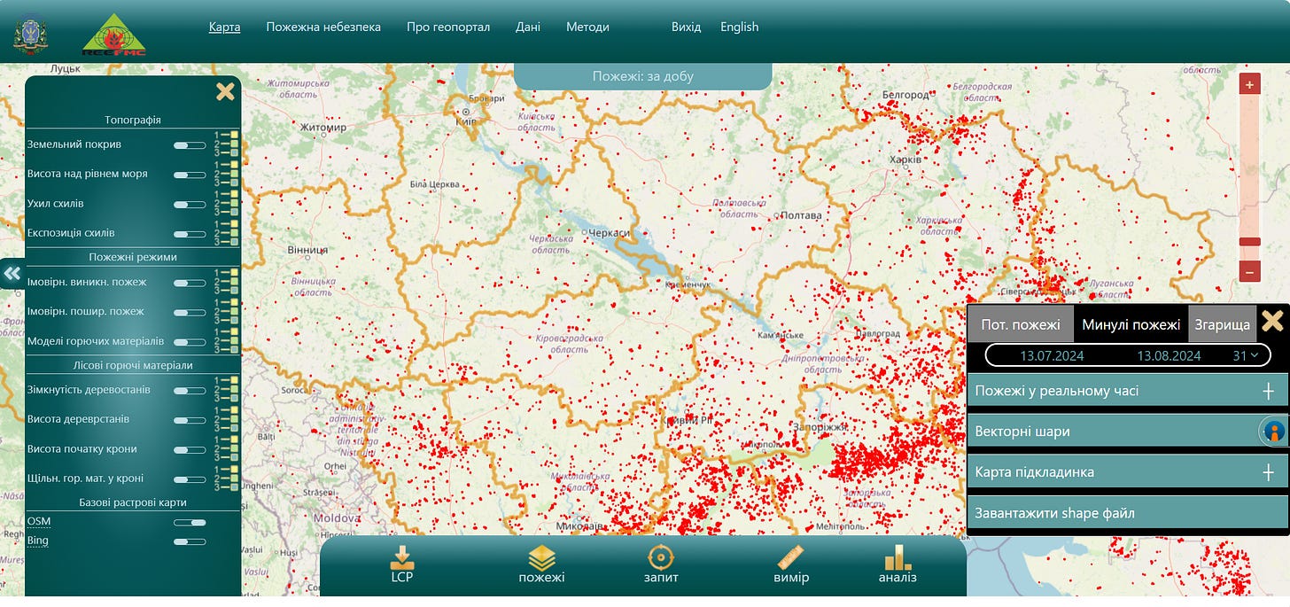 Геопортал “Ландшафтні пожежі” https://wildfires.org.ua/ Веб | Підключення до мережі