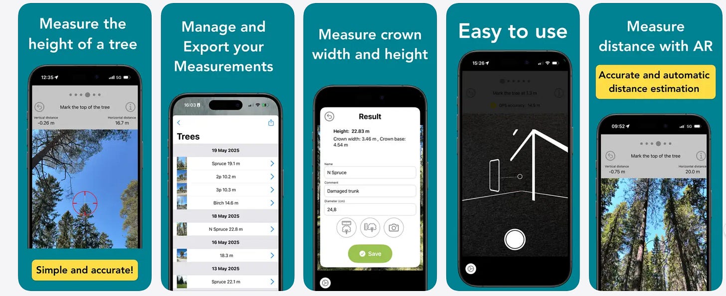 Шведська розробка (Arboreal AB). Використовує доповнену реальність для вимірювання висоти дерева, ширини та висоти крони, кута нахилу. Оцінювався поряд із ForestScanner у публікації Forest Science (Oxford Academic, 2024) при вимірюванні діаметра на висоті грудей на LiDAR-iPad. Безкоштовна версія обмежена кількістю вимірювань.