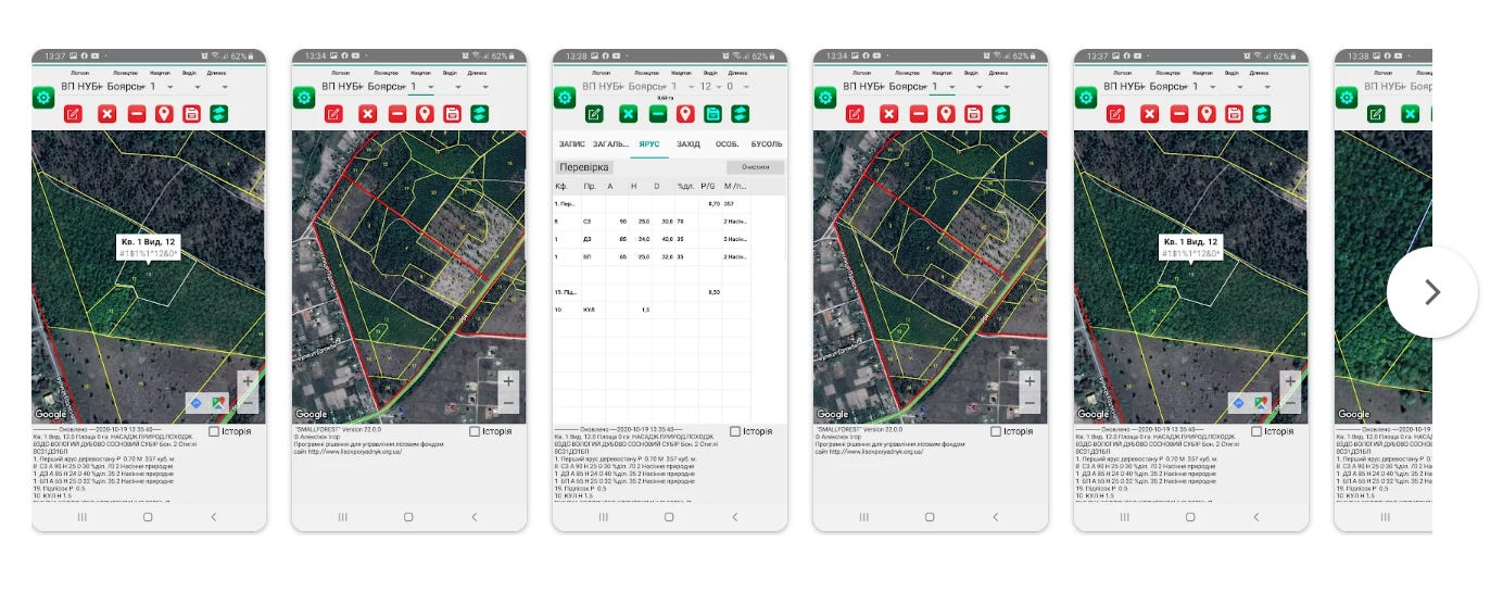 Незалежний мобільний застосунок, створений українським розробником Ігорем Алексіюком. Рішення орієнтоване на внесення таксаційних даних, формування та редагування кварталів і виділів, а також налагодження оперативного зв’язку між персоналом лісогосподарського підприємства. У 2021 році програмний продукт був успішно адаптований під потреби «Національної лісової інвентаризації України», а загальна аудиторія на той час перевищила 3,5 тисячі активних користувачів.