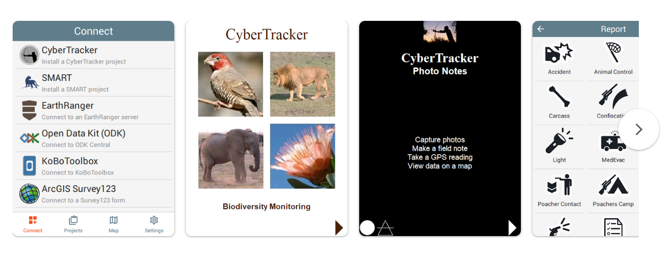 Розроблений CyberTracker Conservation (Південна Африка). Система з піктограмним інтерфейсом, спочатку спроєктована для використання мисливцями-збирачами та нелітературними трекерами. Нині широко застосовується у природоохоронній науці завдяки виключній простоті польового введення даних. Понад 600 000 завантажень у 150+ країнах. Інтегрується зі SMART, ODK та Survey123.