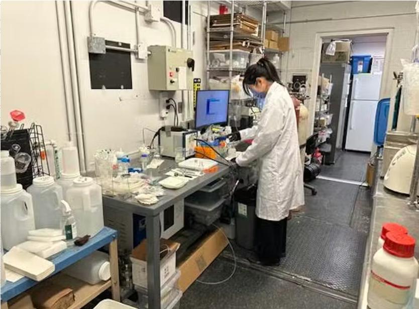 Вэй Вэй, аспирант Университета Ватерлоо, возглавляющий исследование, работает в лаборатории над переработкой пластика. (Университет Ватерлоо)