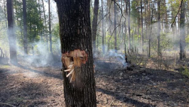 Последствия обстрела в лесном районе Конотоп (Сумыская область).