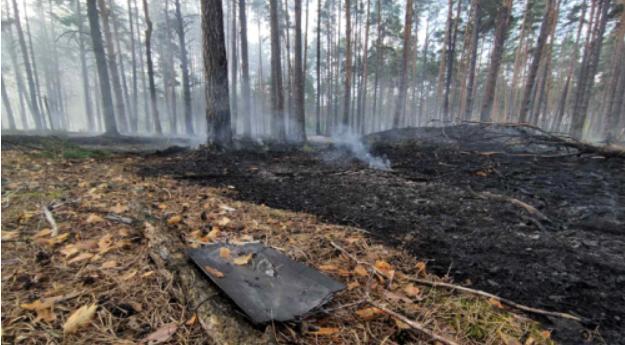 Лесной покров уничтожен пожаром после крушения российского беспилотника в Иванковском лесном районе (Киевская область).