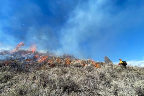 Контролируемое выжигание в конце марта на горе Мангер в Национальном лесу Бриджер-Тетон, к югу от Джексона, штат Вайоминг.
