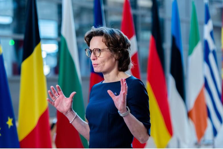 Джессика Росвалл, европейский комиссар по вопросам окружающей среды, устойчивости водных ресурсов и конкурентоспособной циркулярной экономики, выступает перед СМИ. Росвалл работала с Еврокомиссией и Европарламентом над принятием резолюции в последнюю минуту перед вступлением EUDR в силу. «Мы упрощаем правила для мелких фермеров, сохраняя при этом лидерство Европы в борьбе с обезлесением», — сказала Росвалл.