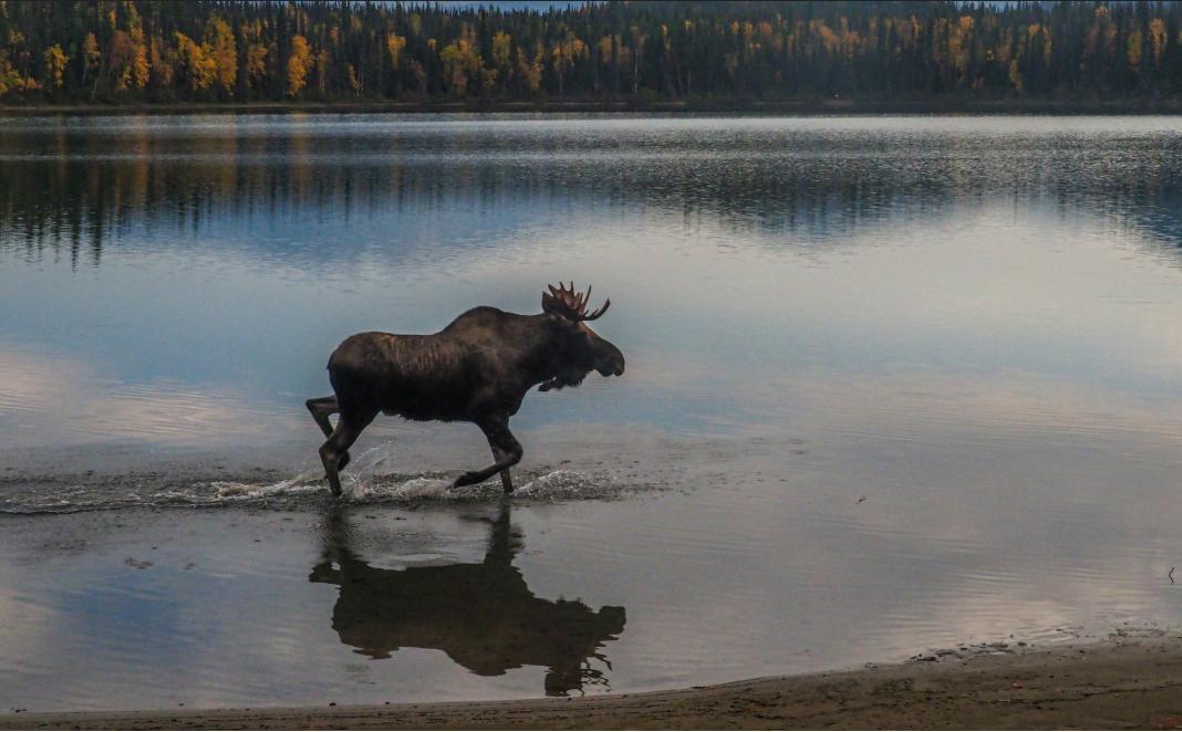 Лоси пережили период сильной жары в Британской Колумбии в 2021 году лучше, чем другие виды животных, потому что смогли переместиться в тенистые места: поэтому их так же часто замечали на фотоловушках после этого события, как и до него. Лось идет вдоль берега озера Унна в Британской Колумбии. Фото предоставлено: Лесли Дерксен / Unsplash