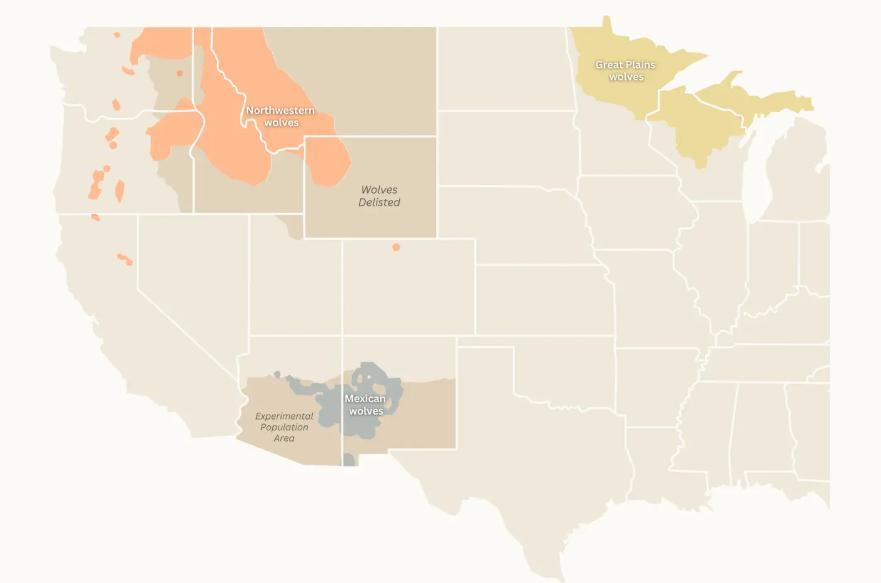 Когда в 2021 году в Висконсине волки-серые с Великих равнин лишились защиты в рамках Закона об охране исчезающих видов (ESA), охотники убили 218 особей менее чем за три дня, продемонстрировав, что исключение волков из списка охраняемых видов гарантирует их истребление. В следующем году, когда группа защитников дикой природы подала в суд на Департамент природных ресурсов Висконсина, защита в рамках ESA была восстановлена.