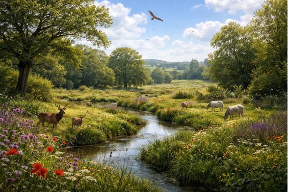 Непростая реальность возрожденной дикой природы Британии. (Изображение создано The Conversation с помощью Gemini и подробного задания на 376 слов). The Conversation / Gemini , CC BY-SA