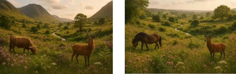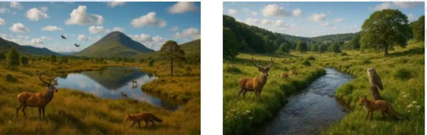 Взгляд Copilot на восстановление дикой природы в Шотландии (слева) и Англии (справа). Wartmann & Cary / ChatGPT , CC BY-SA
