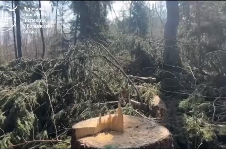Під час проведення спільного огляду території встановили незаконну порубку 466 дерев, порід: ялина, сосна, вільха, дуб та береза.