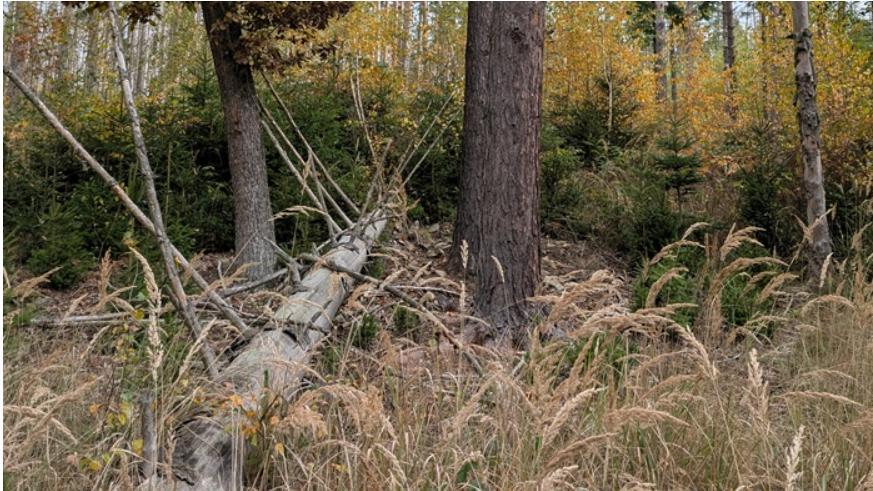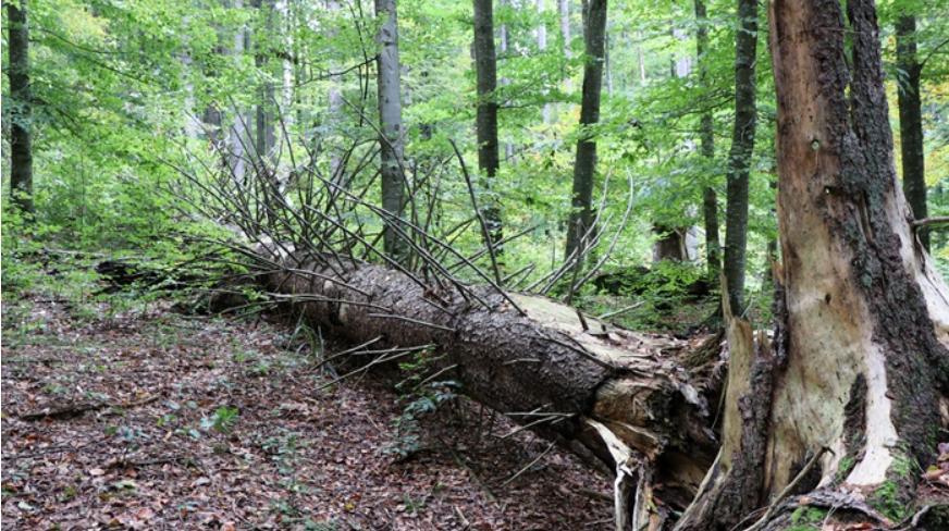 В настоящее время доля мертвой древесины в наших лесах увеличивается, – в основном в сухих условиях произрастания. С моей точки зрения, это часто следствие поведения лесовладельцев, которые оставляют или оставляли деревья ели, усохшие из-за нашествия короедов в местах, где вырубка технически затруднена или экономически невыгодна. Теперь это стоящий сухостой, который преподносятся как мертвая древесина, оставленная для увеличения биоразнообразия. Объемы такой древесины значительны, но её вклад в биоразнообразие, особенно в еловых лесах средних широт, минимален. С моей точки зрения, значительно более ценна лежащая мертвая древесина лиственных деревьев, с которой связано огромное количество видов.. В университетских лесах цель состоит в том, чтобы активно распределять мертвую древесину таким образом, чтобы она выполняла свою экологическую функцию. Хотя и здесь мы иногда пользуемся преимуществом, оставляя древесину в насаждениях, где это нерентабельно — например, там, где древесину невозможно эффективно сконцентрировать.