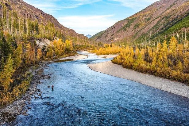 Чистый воздух, чистая вода, богатые рыбой и дикой природой места обитания, а также множество возможностей для отдыха на свежем воздухе круглый год запечатлены на этой фотографии, где одинокий рыбак ловит рыбу среди осеннего великолепия на реке Флэтхед в штате Монтана. Фотография Flathead Beacon