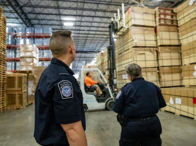 Сотрудники Таможенной и пограничной службы США осматривают часть из 2300 поддонов китайской фанеры, изъятых в ходе рекордного по масштабу дела Кинтаны. Речь идёт о 42 миллионах долларов неуплаченных пошлин за контрабанду российской древесины, отмытой через подставные компании и китайских посредников. Супруги из Майами, стоявшие за этой схемой, получили 57-месячные сроки тюремного заключения, что является самым суровым приговором в истории применения Закона Лейси. (Фото: Таможенная и пограничная служба США)
