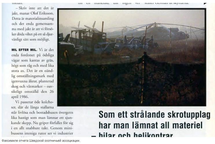 В 1995 году газета Svensk Jakt опубликовала репортаж, в котором журналист Йоран Бенгтссон сопровождал шведско-украинскую исследовательскую группу в опустевшую Чернобыльскую АЭС. Исследователи изучали, как ядерная катастрофа повлияла на дикую природу.