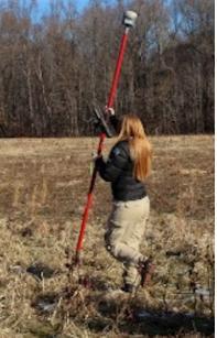 Техник Шелли Беннетт использует GPS с высоким разрешением для разметки участков для эксперимента в Смитсоновском центре экологических исследований в штате Мэриленд. Реган Тодд/Смитсоновский центр экологических исследований